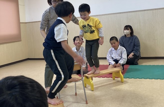 職員の問いかけに少し悩む子ども達。