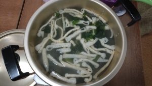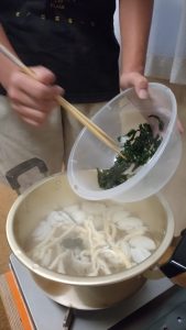 最初に完成した味噌汁は味噌がやや薄かったようでしたが、味は格別でした。野菜が苦手な子どもも「おいしい‼ これなら野菜も食べられるよ!」と大絶賛。お代わりをする子どもの行列ができました。
