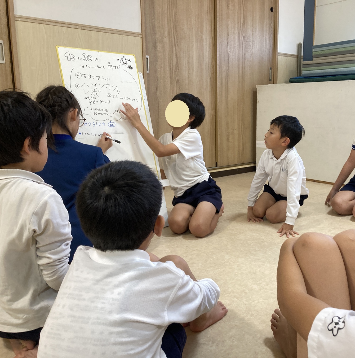 まず、ハロウィンウィークで何をするか子ども同士で話し合いました。
