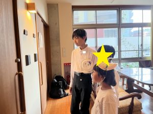 玄関前では少し緊張する姿も見られましたが、ペアで話し合いながら「どっちが押す?」「一緒に言う?」と相談する姿がありました。