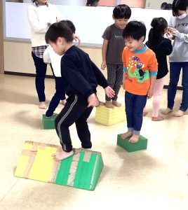 児童発達支援、特に年少中クラスでは、「とことん遊び込む」「感情を動かす」ことをねらいに活動を行っています、という説明を行いました。