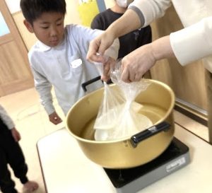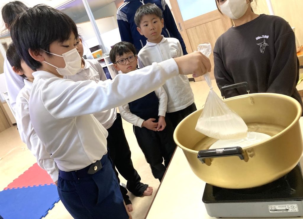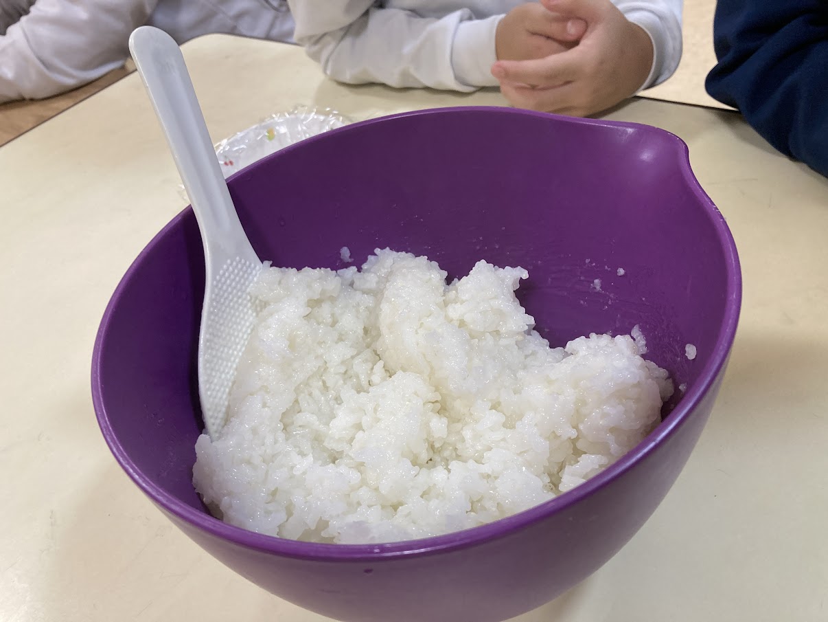 ポリ袋ご飯は、ふりかけなしでそのまま食べたいという子ども達。お替わりして完食しました。