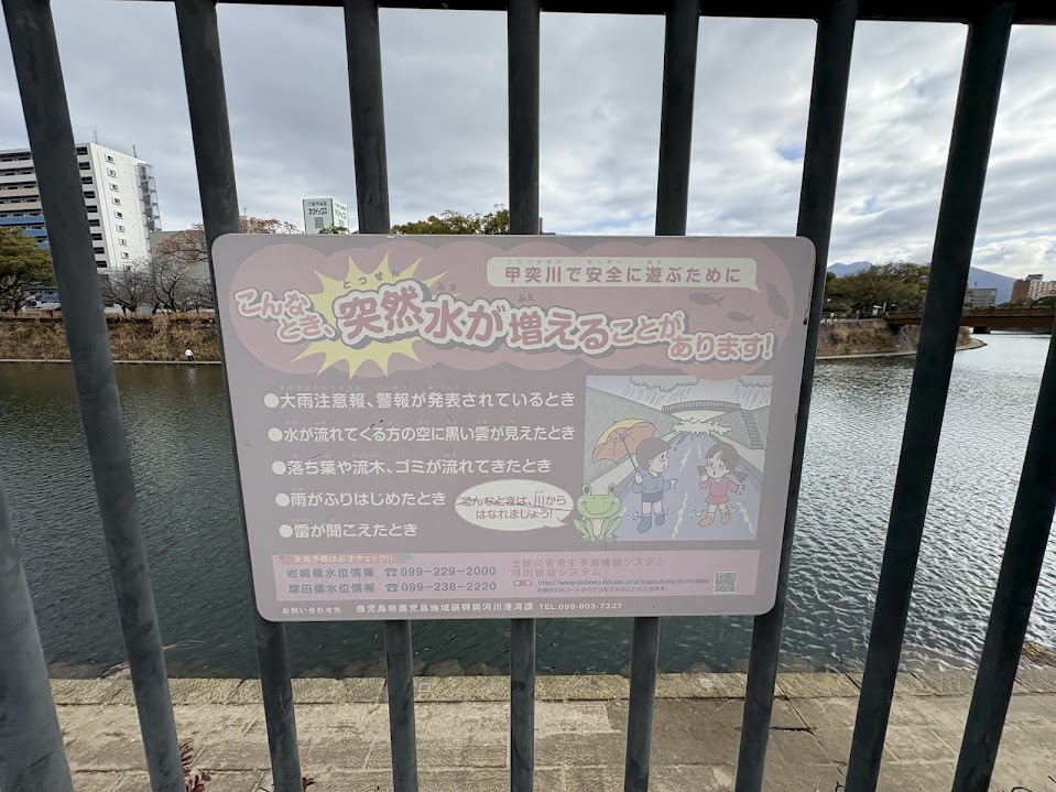 大雨により河川が氾濫するおそれがある状況を想定し、甲突川の様子を確認しました。