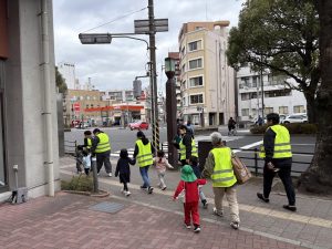 普段とは異なる流れや環境に戸惑う子どもが出ることも想定していましたが、子ども達は落ち着いて避難することができ、職員も安全に誘導するための声かけや立ち位置を確認する良い機会となりました。